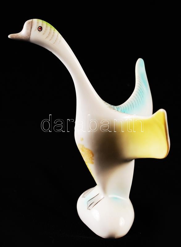 Hollóházi liba, kézzel festett, hibátlan, jelzett, m:14 cm