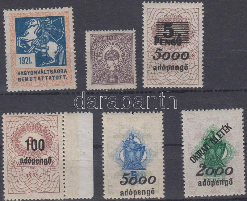 1921-1946 Kis okmánybélyeg tétel, benne 4 db adópengős bélyeg