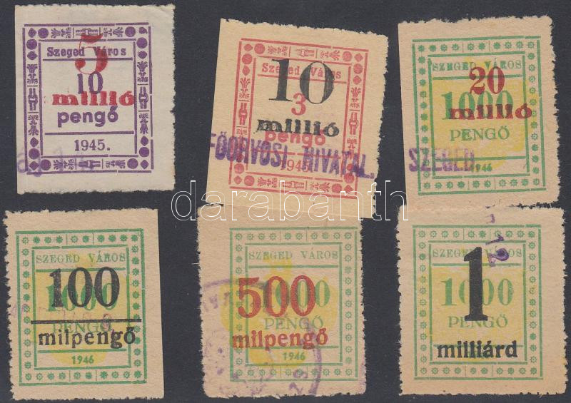 1946 Szeged város 6 db illetékbélyeg felülnyomással