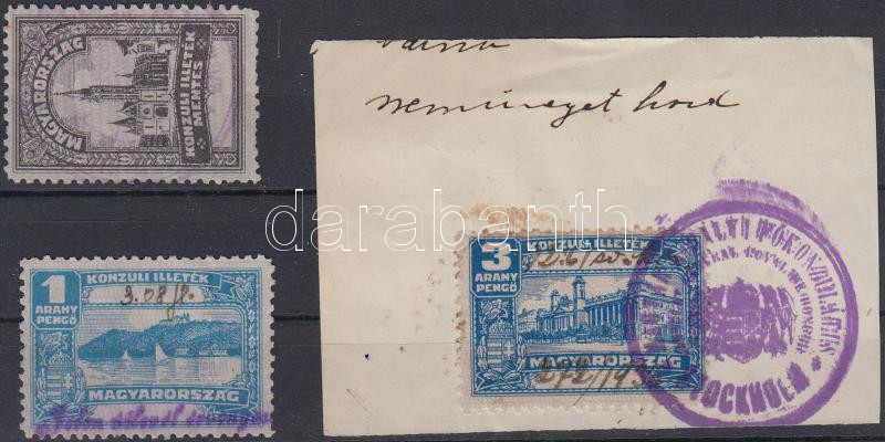 Konzuli illetékbélyeg 3 db, ebből 1 kivágás