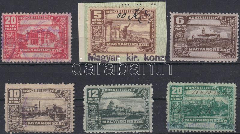 Konzuli illetékbélyeg 6 db, ebből 1 kivágás