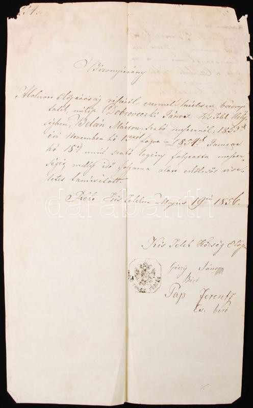 1856 Kistelek, A helyi elöljáróság által kiállított bizonyítvány szabó... https://www.darabanth.com/en/215-Online-auction/215.0/Other-collectibles/Documents~27/1856-Kistelek-A-helyi-eloljarosag-altal-kiallitott-bizonyitvany-szabolegenykent-eltolt~II906762
