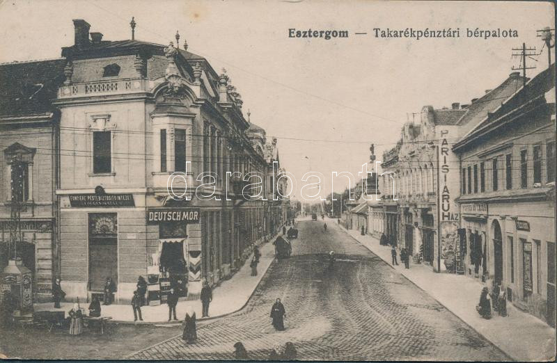 https://www.darabanth.com/en/215-Online-auction/215.0/Postcards/Hungary~40010/Esztergom-Takarekpenztari-berpalota-Deutsch-Mor-kereskedese-azott-sarok~II900273