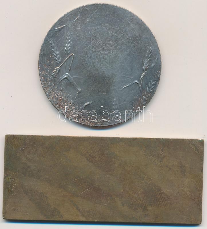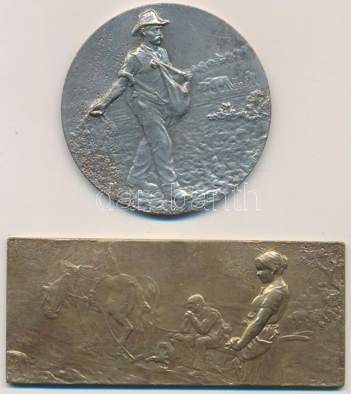 ~1930. Szántó Vető ezüstözött Br emlékérem. Szignó: Huguenin (50mm) + 1895. Szántás Br plakett. Szign: FxP (80x34mm) a kettő együtt egy dísztokban T:2