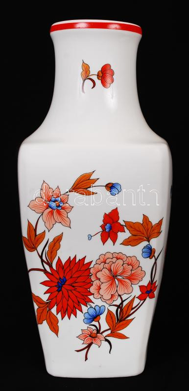 Hollóházi porcelán virágmintás matricás váza, hibátlan, jelzett, m: 36...