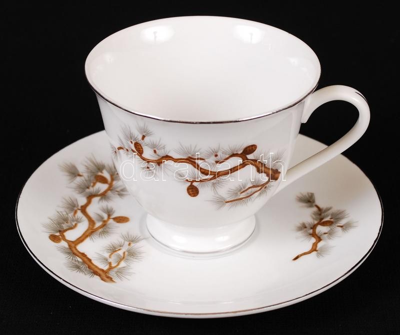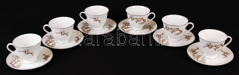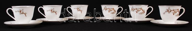 Jelzett kínai teás csésze és alj (6db), kézzel festett, jelzett, 2 db apró csorbával