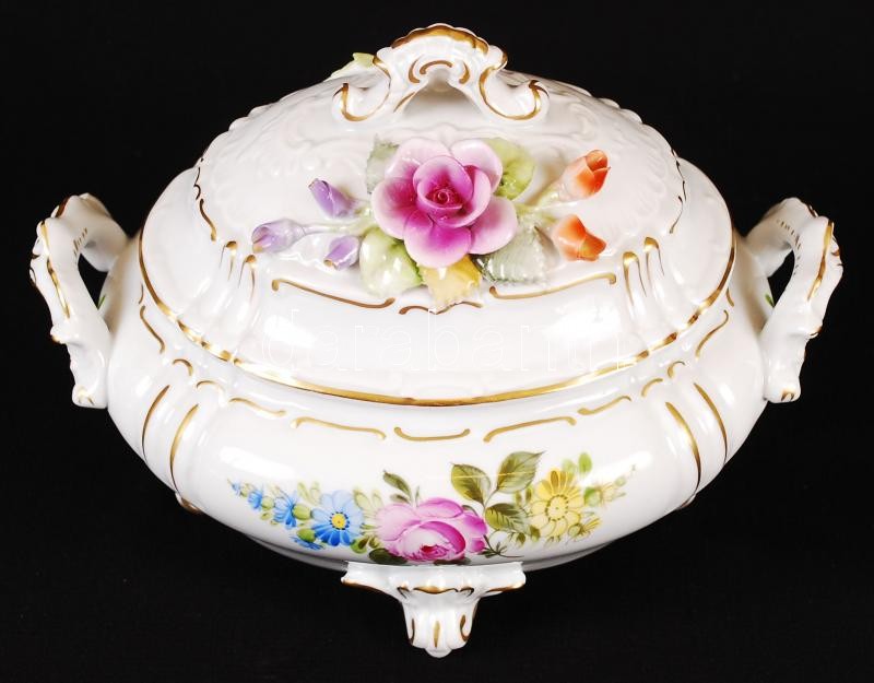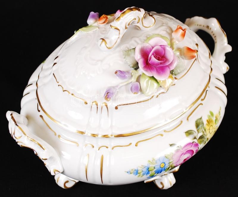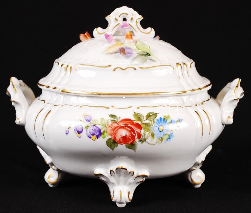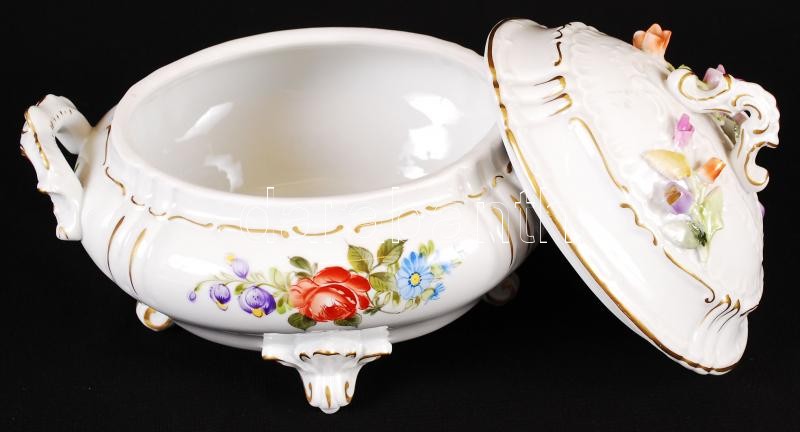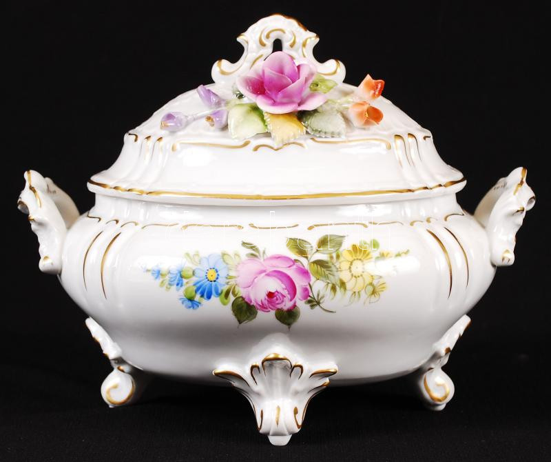 Porzellan Manufaktur Plaue bonbonier, kézzel festett, jelzett, hibátlan, h:19 cm, m:16 cm