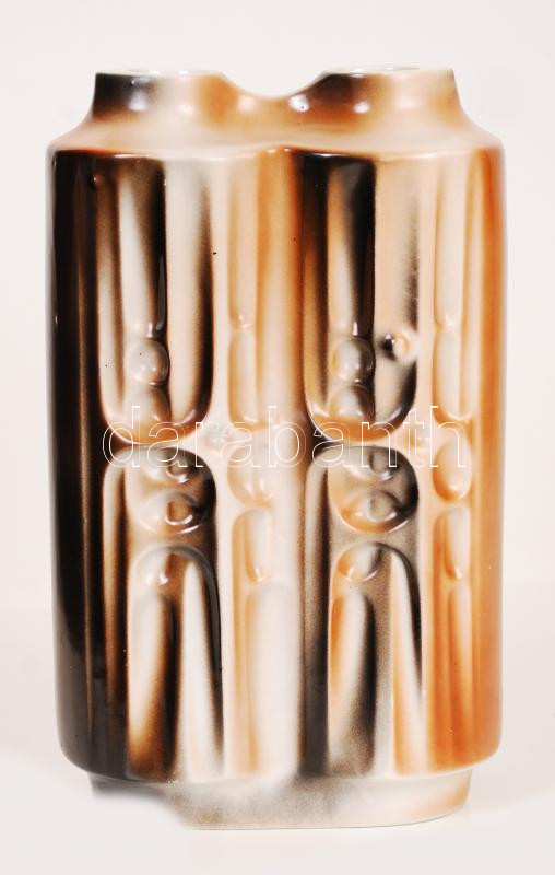 Színes porcelán dupla váza, hibátlan, jelzett, m: 23 cm