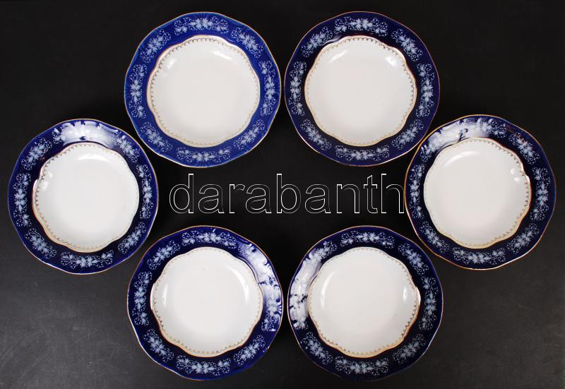 Zsolnay Pompadour lapos mélytányér készlet (6db), jelzett, hibátlan, d...
