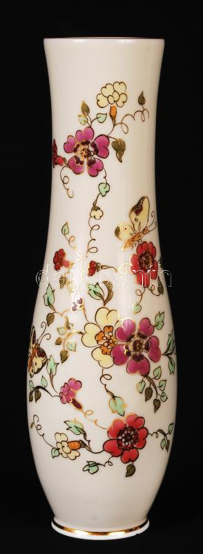 Zsolnay pillangó mintás váza, kézzel festett, jelzett, hibátlan, m:25 cm