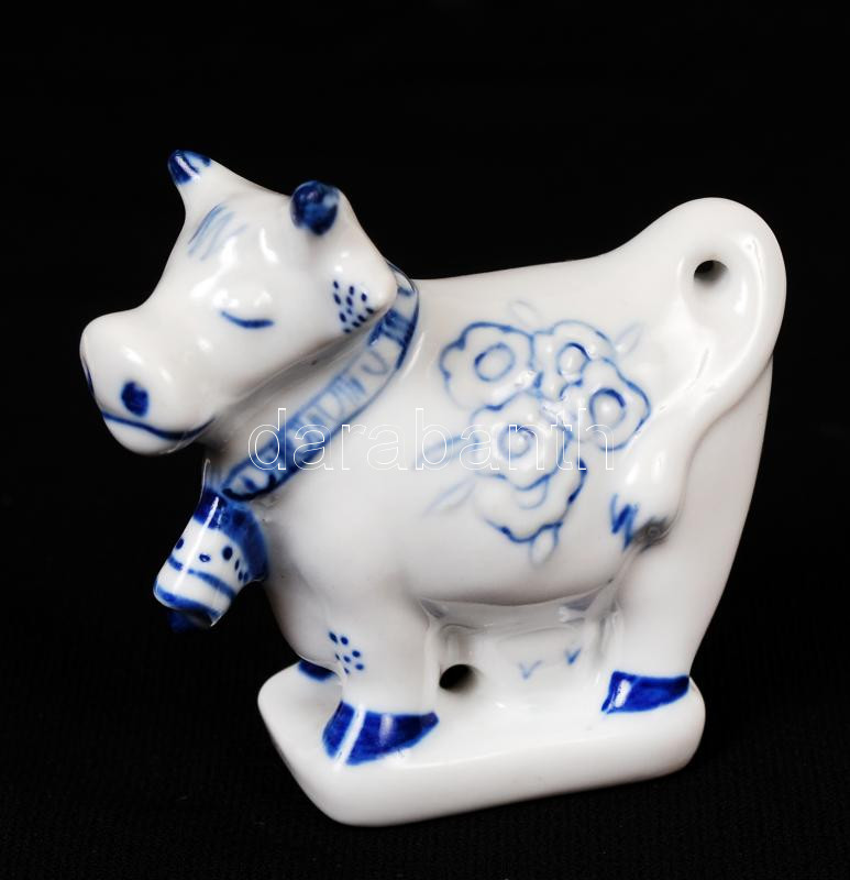 Zsolnay tehén, kézzel festett, jelzett, hibátlan, m:7 cm