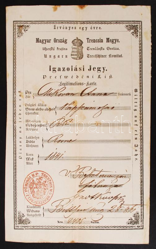 https://www.darabanth.com/en/216-Online-auction/216.0/Other-collectibles/Documents~400053/cca-1850-Trencsen-megyei-igazololevel-napszamos-reszere-ID~II909009