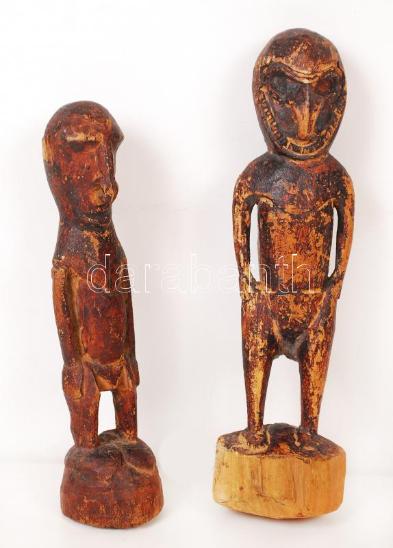 2 db régi, bennszülötteket ábrázoló kultikus jellegű fa szobor, m: 20 és 23 cm