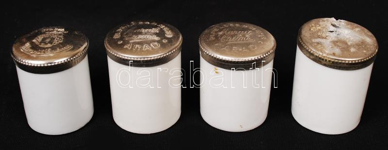 4 db Földes és Hehs " Margit krémes tégely Arad, fém tetőkkel, egyik sérült, m:5 cm