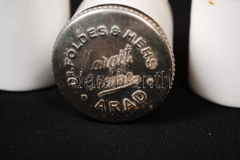 4 db Földes és Hehs " Margit krémes tégely Arad, fém tetőkkel, egyik s...