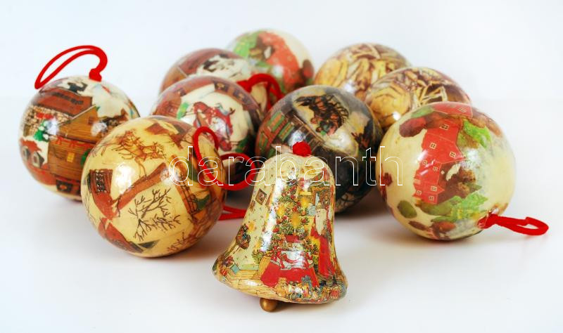 Retro, képes karácsonyfadíszek, gömbök 10 db / Retro Christmas decorat...