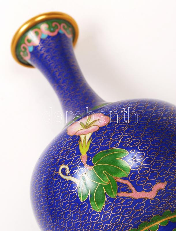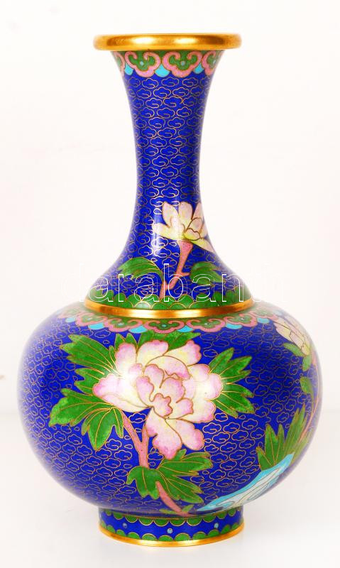 Virág mintás zománc váza, réz, hibátlan, jelzés nélkül, m:20 cm