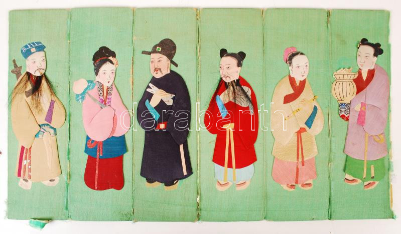 cca 1930 Hongkong, Kartonra kasírozott selyem figurák nevezetes embere...