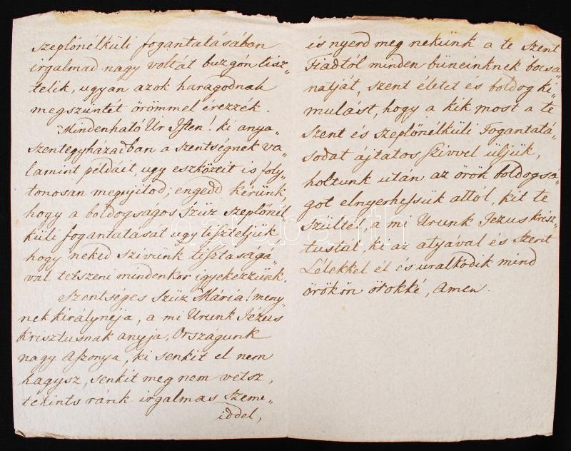 cca 1850 Könyörgő ima szövege Szűz Máriához. Magyar nyelvű kézirat