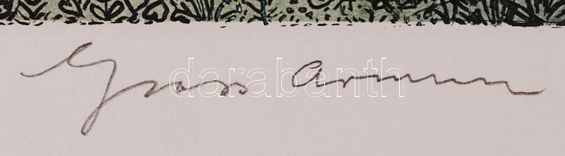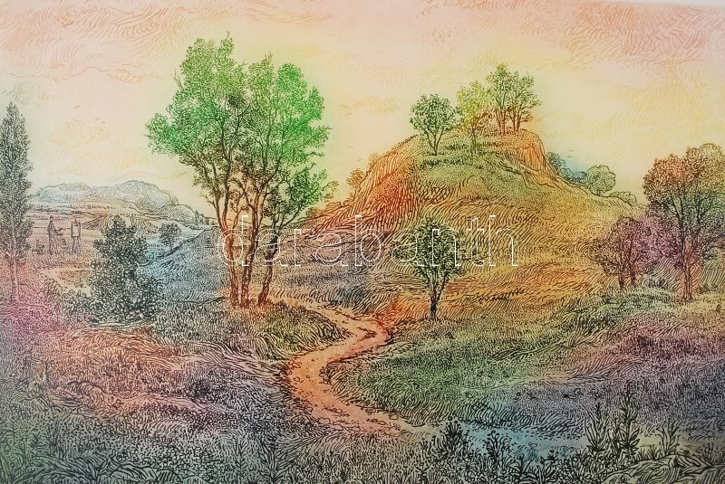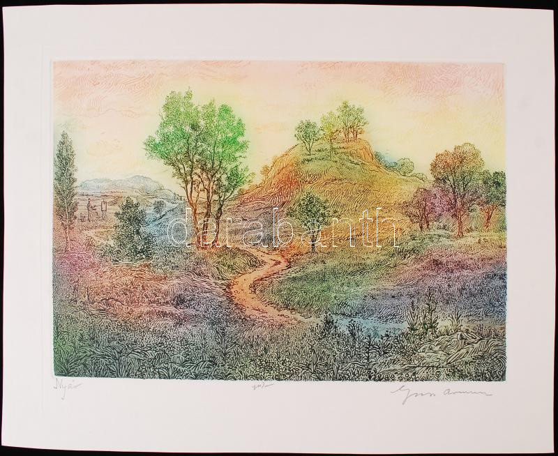 Gross Arnold (1929-): Nyár. Színezett rézkarc, papír, jelzett, 20×30 c...