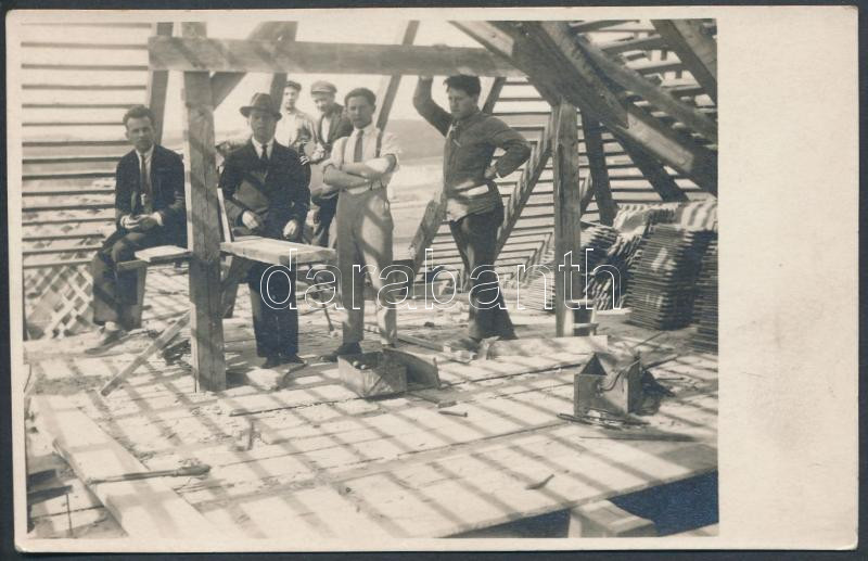 cca 1930 Tetőfedő ácsok, fotólap, 8x13 cm