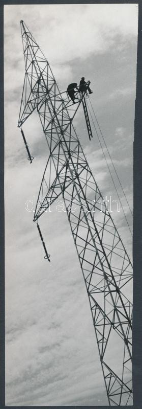 cca 1970-1980 Magyar Alfréd: Hálózat szerelők, jelzetlen fotóművészeti alkotás a szerző archívumából, 24x8 cm