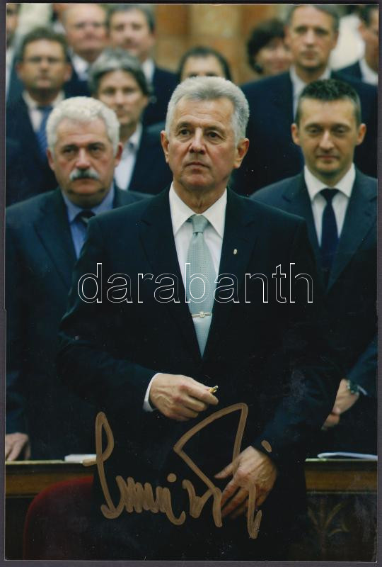 Schmitt Pál (1942-) kétszeres olimpiai bajnok párbajtőrvívó, sportdiplomata, diplomata, közgazdász, politikus aláírása fotón