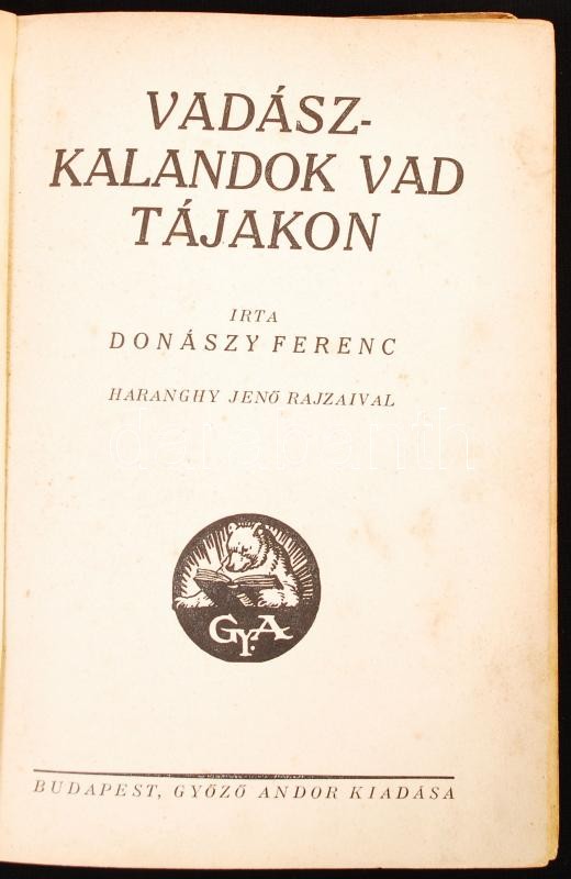 Donászy Ferenc, Vadászkalandok vad tájakon. Haranghy Jenő rajzaival. B... https://www.darabanth.com/en/217-Online-auction/217.0/Other-collectibles/Books-Hunting~40/Donaszy-Ferenc-Vadaszkalandok-vad-tajakon-Haranghy-Jeno-rajzaival-Bp-1943-Hungaria-1-sztl~II908316