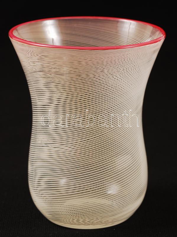 Csíkos üveg pohár, peremén festett, hibátlan, m:10 cm