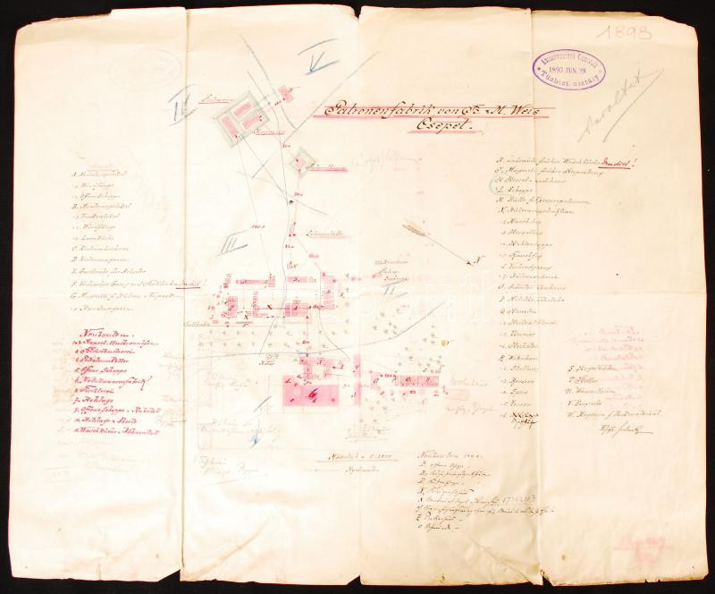 1897 A Csepeli Partonenfabrik (Weisz Manfréd gyár) helyszínrajza 43x35 cm