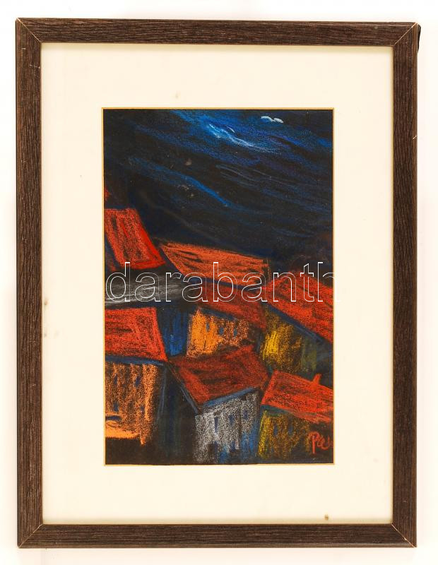 Pásztor György (1914-): Háztetők. Pasztell, papír, jelzett, üvegezett ...