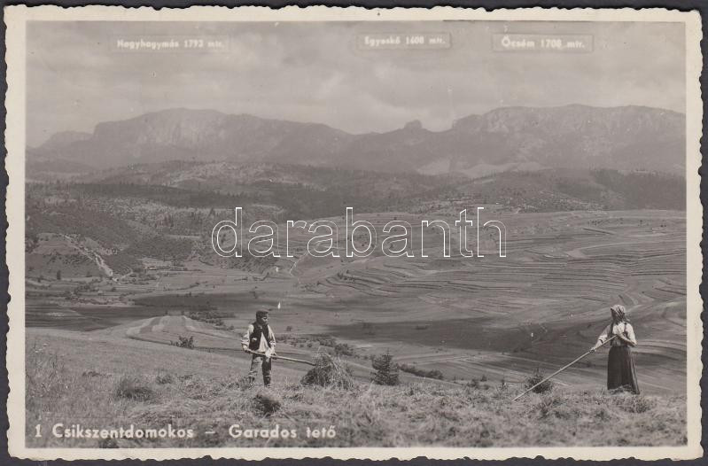 cca 1940-1942 Erdély, Csíkszentdomokos, Gardos-tető, szénagyűjtők, a Fotofilm kiadásában megjelent, postázott fotólap, 9x13 cm