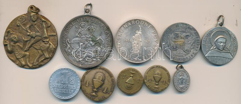 9pcs of mixed Hungarian and foreign badges, medallions, between them Eucharistic Congress, Saint George medallion C:mixed