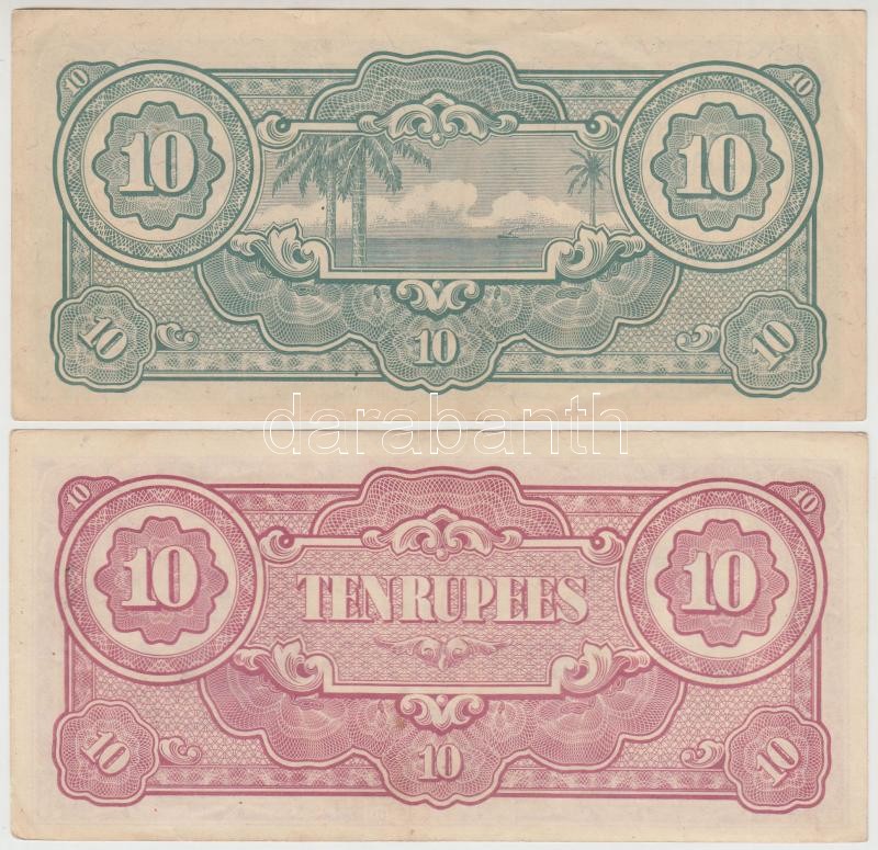 Malaya/Japán megszállás 1944. 10$ + Burma/Japán megszállás 1942-1944. 10R T:II,II-