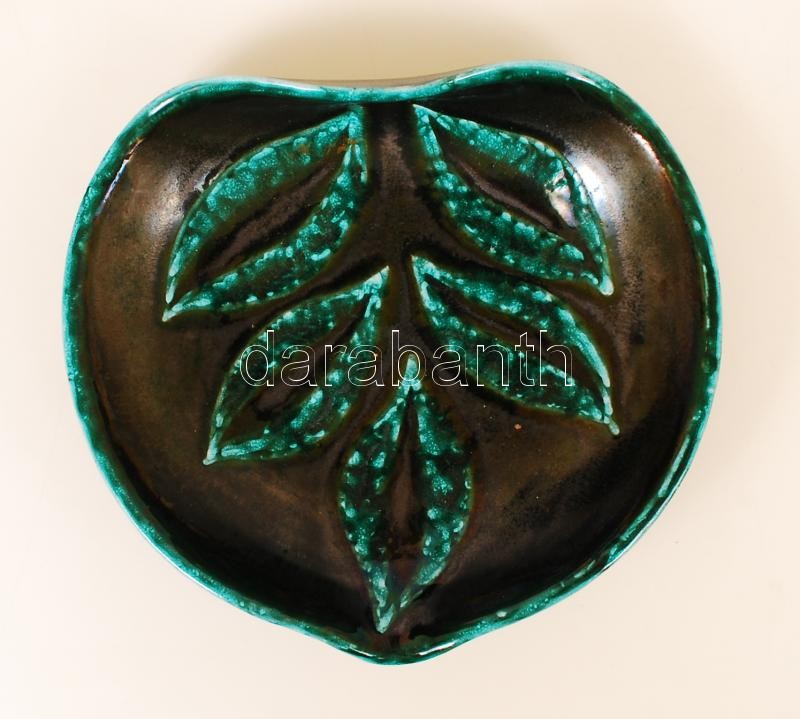EBM jelzésű fekete-zöld kerámia váza és asztali dísztál, apró mázhibával, 18x21 cm