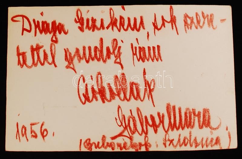 1956 Kaposvár, Gábor Mara színésznő aláírása és üdvözlő sorai az őt áb...