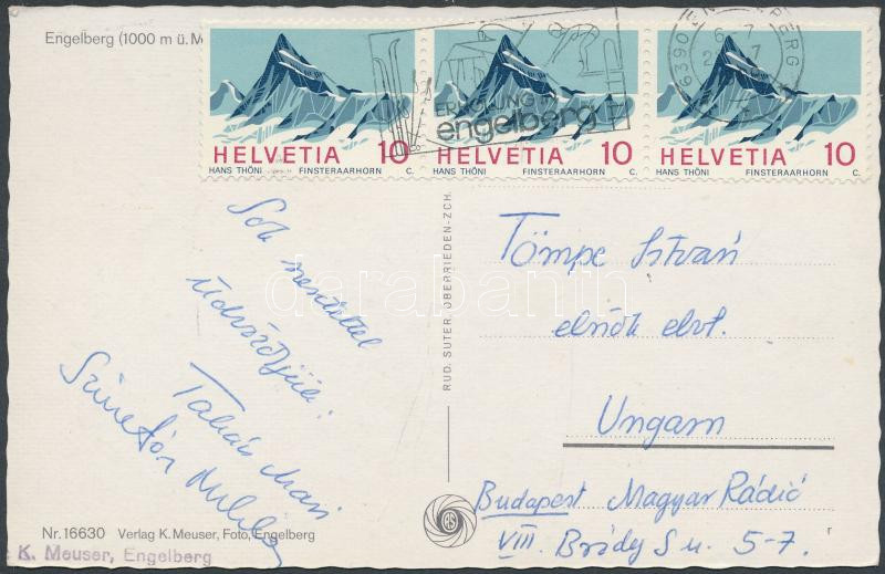 1969 Takács Mari (1938-1997) népszerű TV-bemondónő üdvözlő képeslapja Svájcból Tömpe Istvánnak. Szinetár Miklós (1932- ) rendező aláírásával.