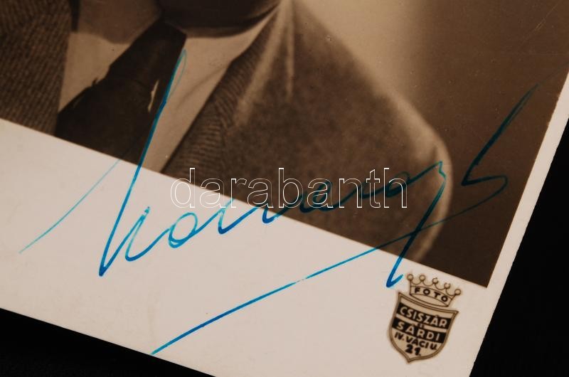 Udvardy Tibor (1914-1981) operaénekes aláírása saját arcképét ábrázoló képeslapon.