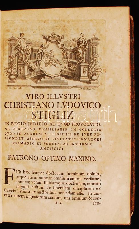 M. Tulli Ciceronis Opera omnia ex recensione Iacobi Gronovii. Accedit Varietas Lectionis Pearcianae, Graevianae, Davisianae cum singulorum librorum Argumentis et Indice Rerum Historico Verborumque Philologico-Critico. Curavit 10. Augustus Ernesti. Lipsiae, 1737, Christiani Martini. Aranyozott, bordázott gerincű egészbőr kötés, gerince kissé molyrágta, színezett lapszélek, a lapok helyenként foltosak, kopottas állapotban / In slightly damaged full leather binding