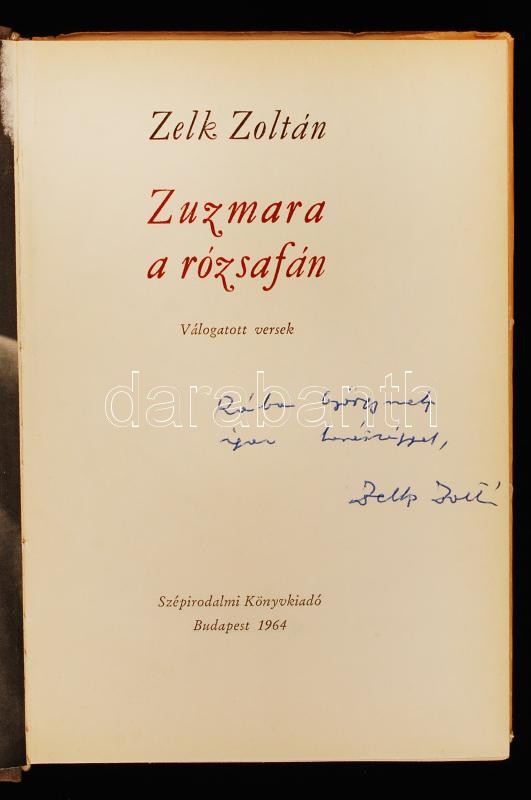 Zelk Zoltán: Zuzmara a rózsafán. Válogatott versek. Bp., 1964, Szépiro... https://www.darabanth.com/en/218-Online-auction/218.0/Other-collectibles/Books-Other-rarities~200040/Zelk-Zoltan-Zuzmara-a-rozsafan-Valogatott-versek-Bp-1964-Szepirodalmi-Konyvkiado-A-sze~II928466