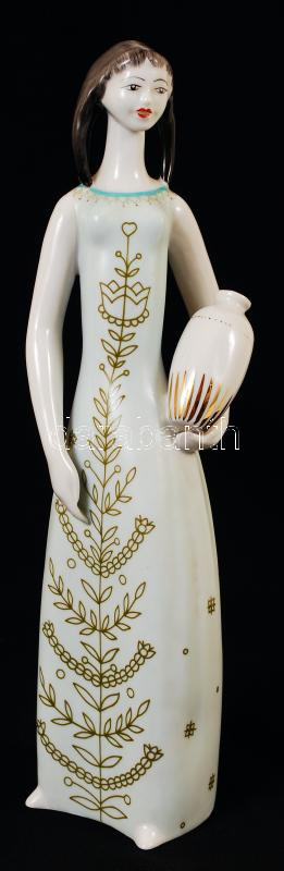 Hollóházi porcelán lány korsóval, hibátlan, jelzett, m: 28 cm