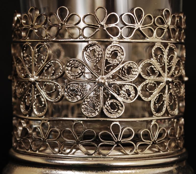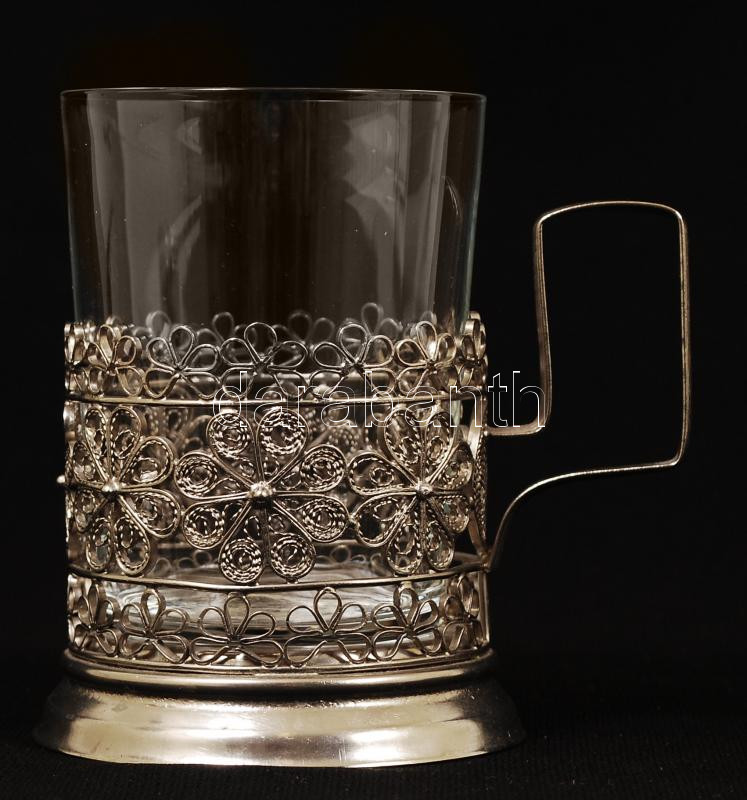 Orosz filigrán díszítésű teás csésze üvegbetéttel, m: 10 cm
