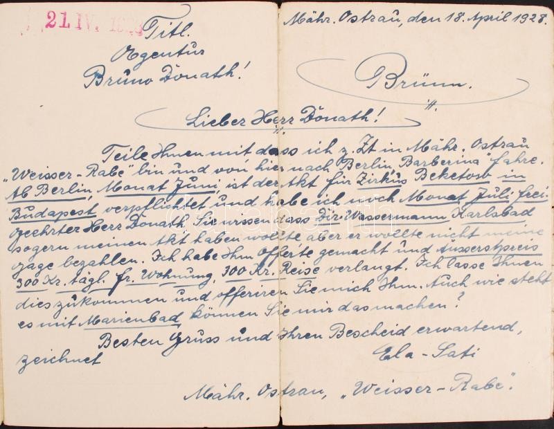 1928 Ela Sati akrobata artistanő képes ismertető füzete, sajét kézzel írt soraival / 1928 Artis woman Ela Sati's picture booklet with her autograph lines