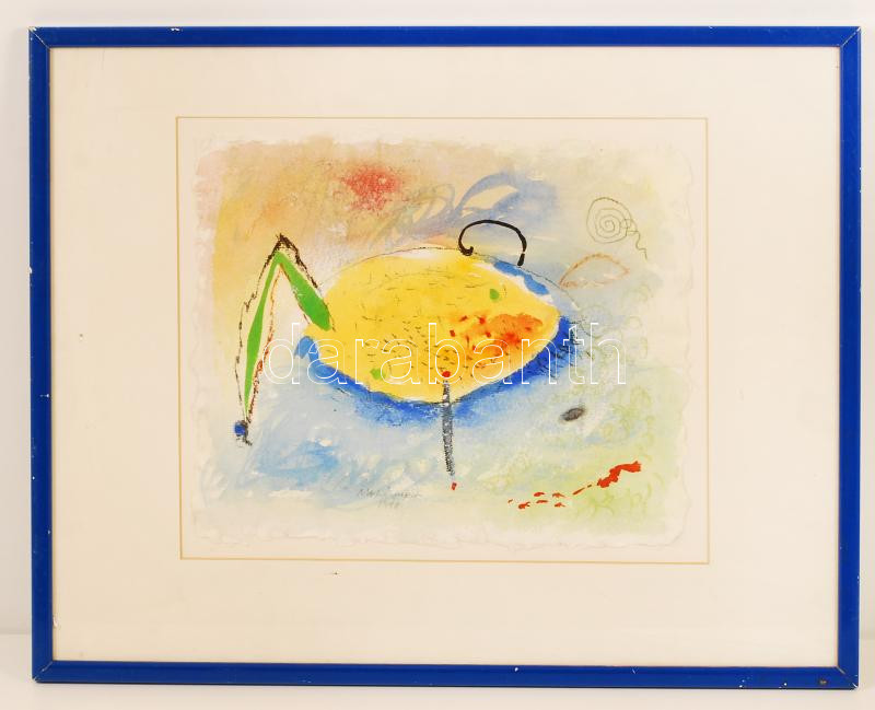Makó Judit (1954-): Vízi lény. Akvarell, merített papír, jelzett, üveg...