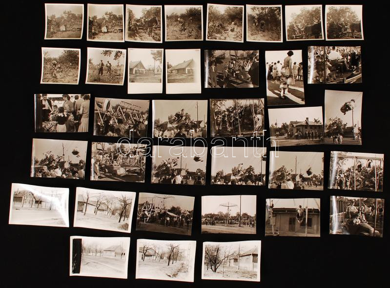 1957 36 db fotó, Rákoskeresztúrról, a Fő utca 1973-ban elbontott házairól, valamint búcsúban készült és szüreti fényképek