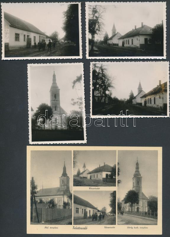 cca 1930 Feketeardő, 1 db képeslap (9×14 cm), és 4 db fotó(~ 8×6 cm), amelyekből a képeslap készült.