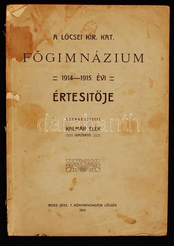 https://www.darabanth.com/en/218-Online-auction/218.0/Other-collectibles/Printed-Materials~200010/1915-Locse-A-Locsei-Kiralyi-Katolikus-Fogimnazium-1914-1915-evi-ismertetoje-53p~II928852