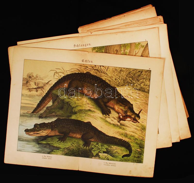 Állatfajok ismertetője színes nagyméretű könyvmellékleteken, 19 db