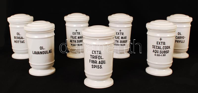 7 db Zsolnay patika edény, jelzett, hibátlan, m:14 cm