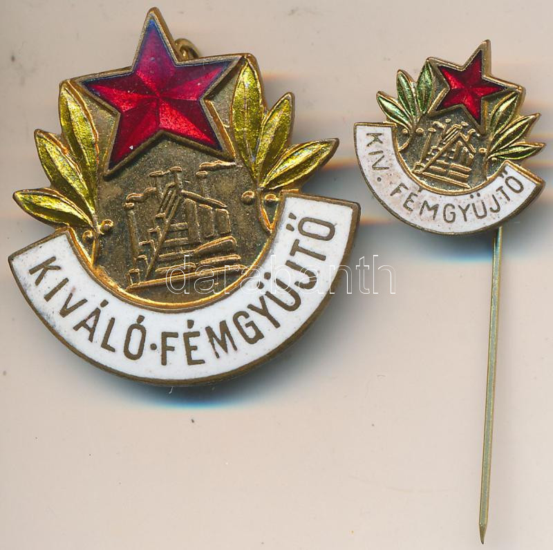 ~1960-1970. "Kiváló Fémgyűjtő" zománcozott fém jelvény és miniatűr T:2